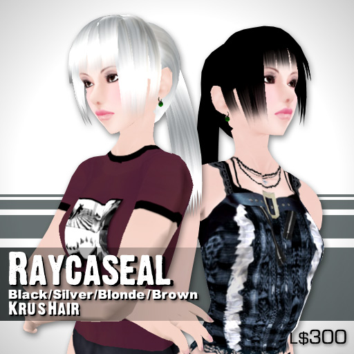 Kru's Hair Raycaseal L$300 I made flexi hair!! because many people start making flexi suff. X) included 4 colors (Black,silver,Blonde and Brown) bangs and pigtail. ah...bangs is not flexi.